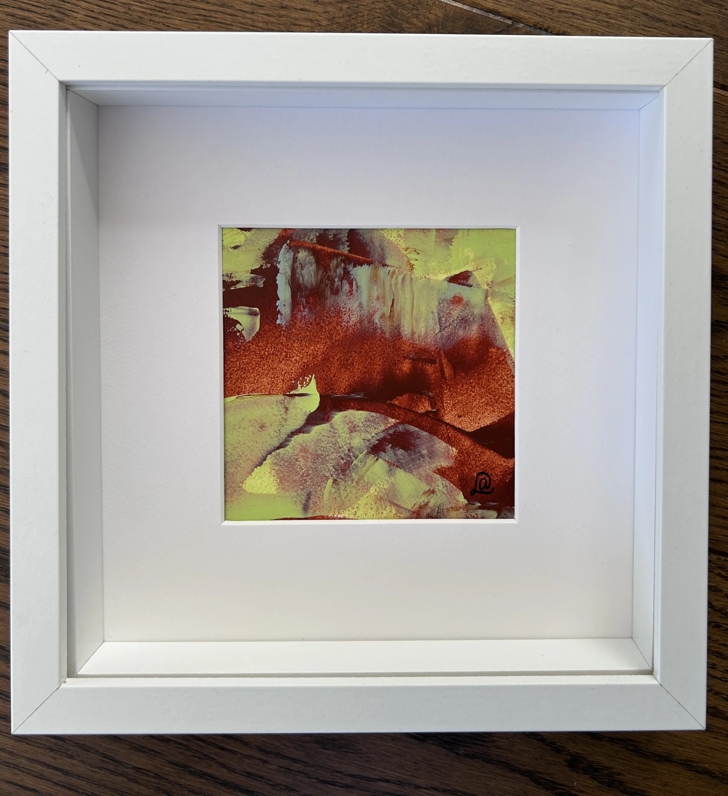 Inramad abstrakt akrylmålning, 15 x 15 cm, 25 x 25 cm inkl ram.