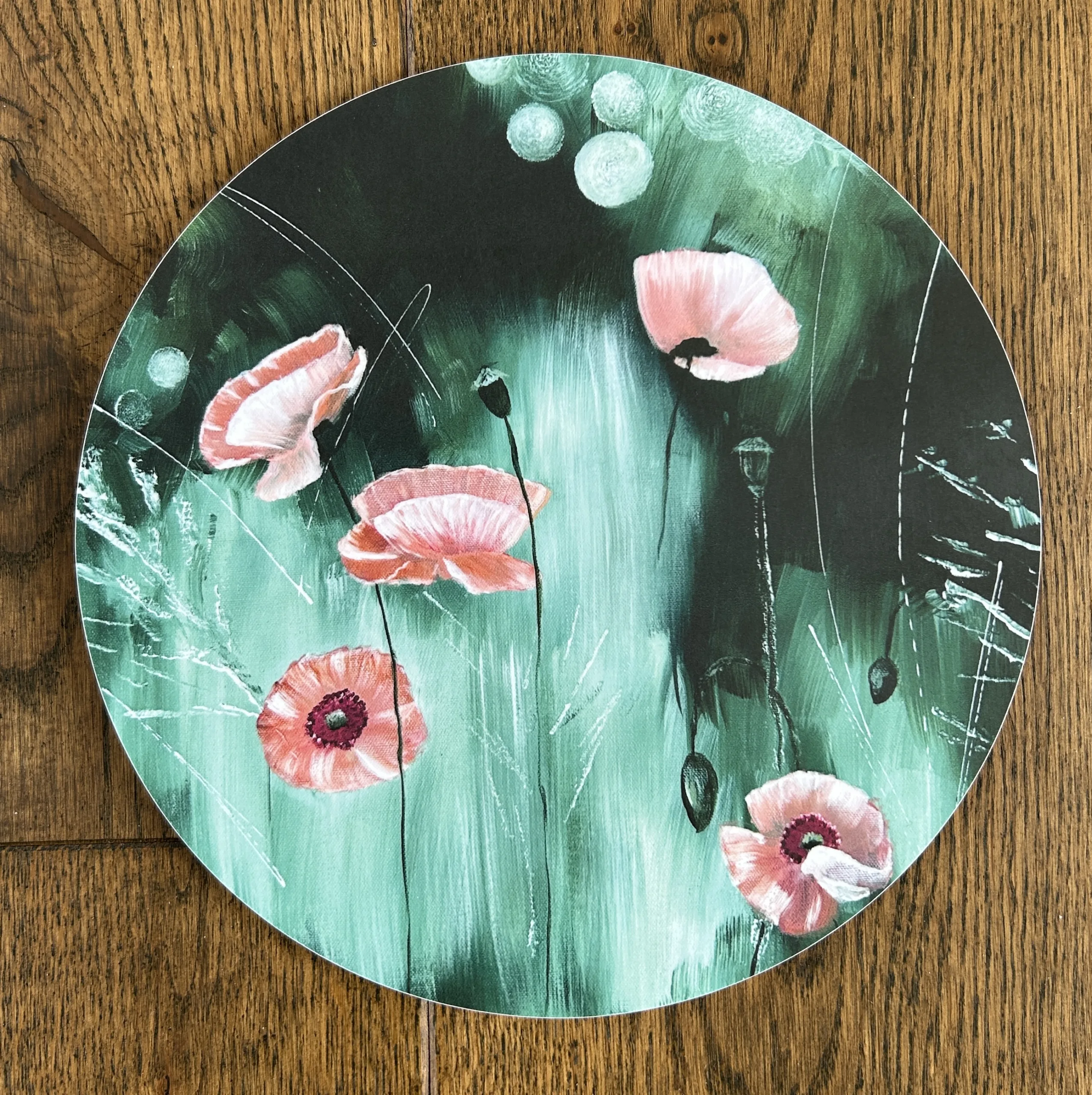 Grytunderlägg 25 cm, tillverkad i MDF med motiv ”I sommarvindens famn”