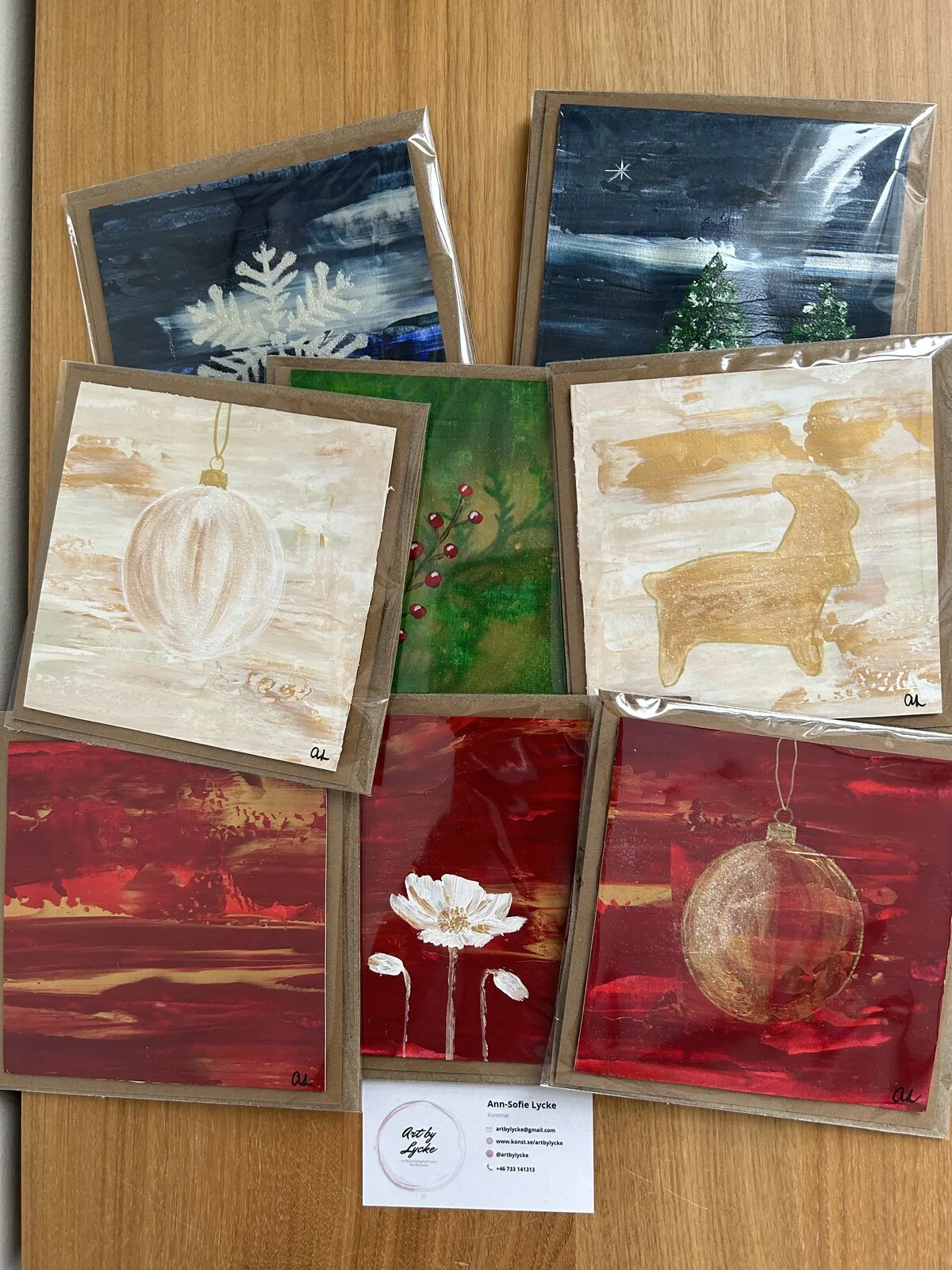 Julkort – handmålade julkort med unika motiv, vikta kort med kuvert, av Art by Lycke