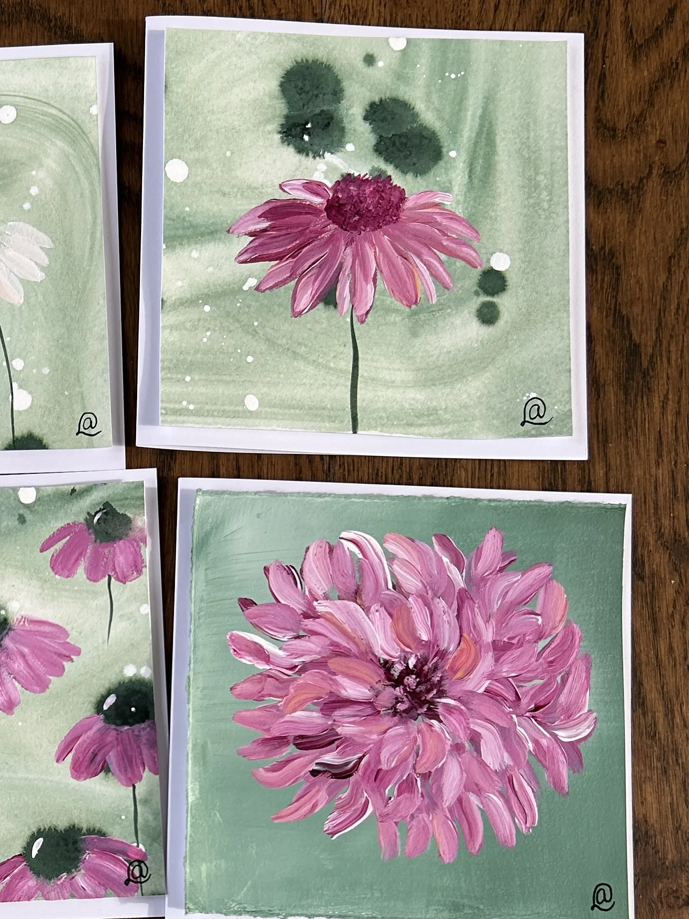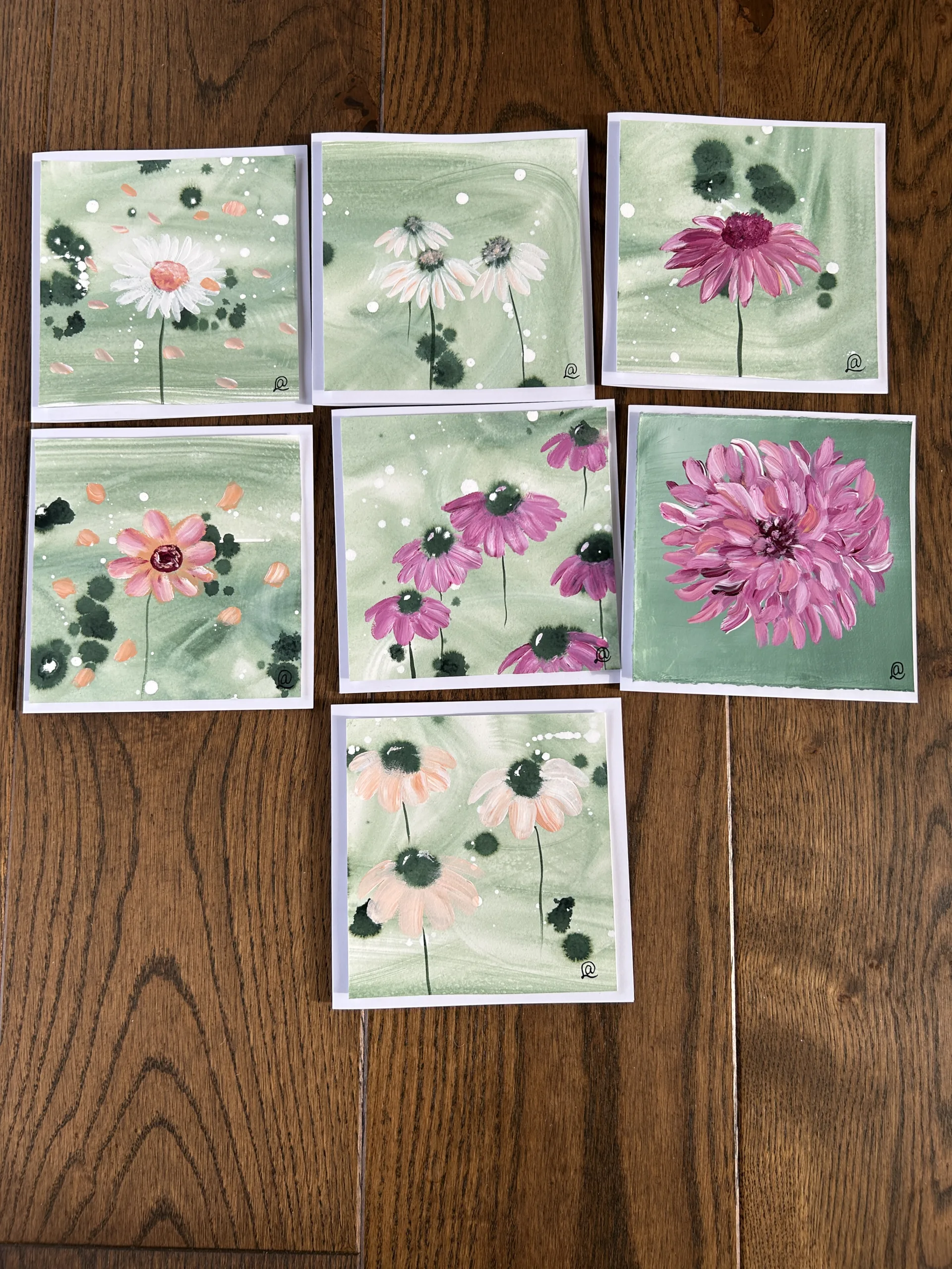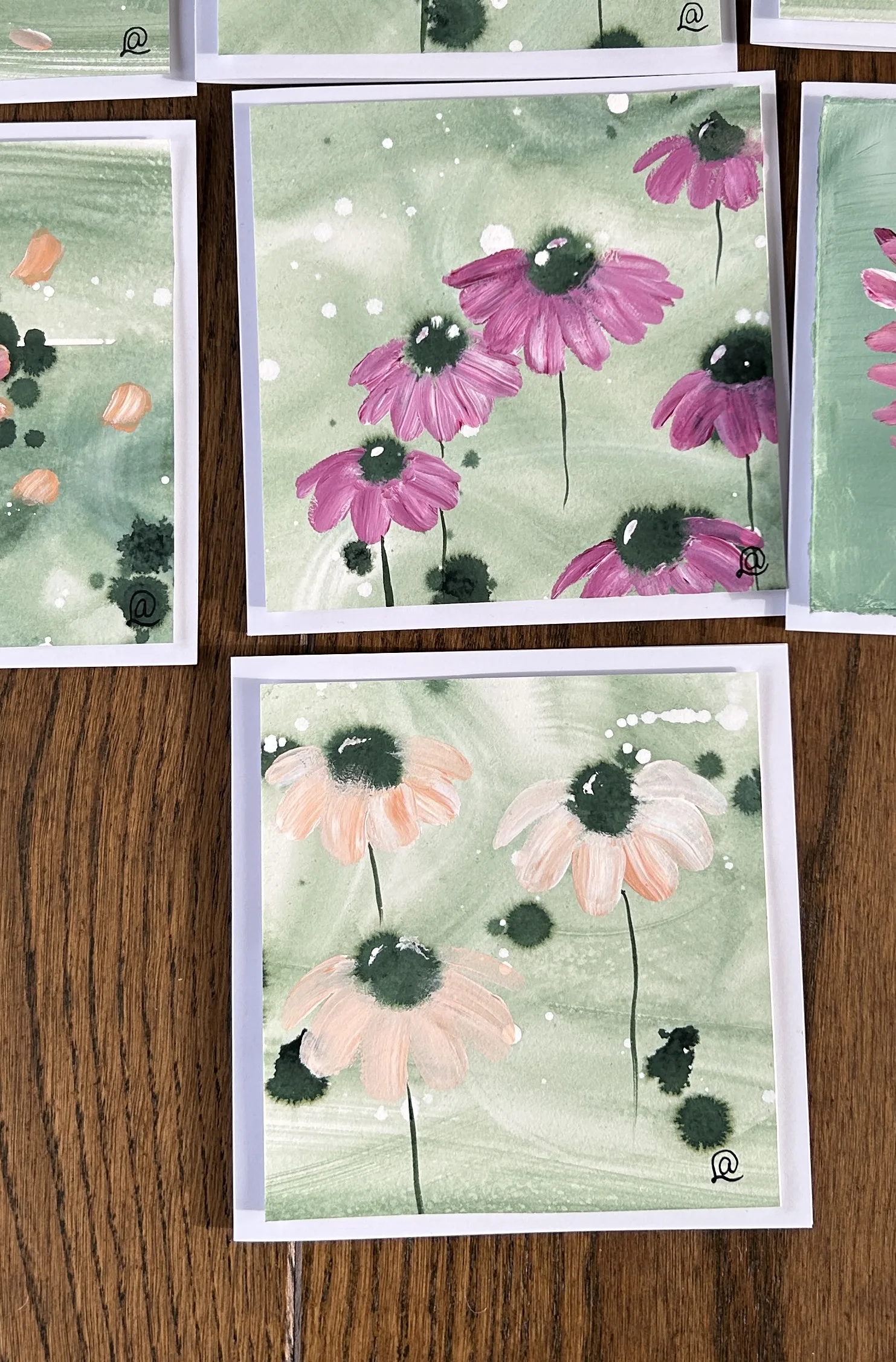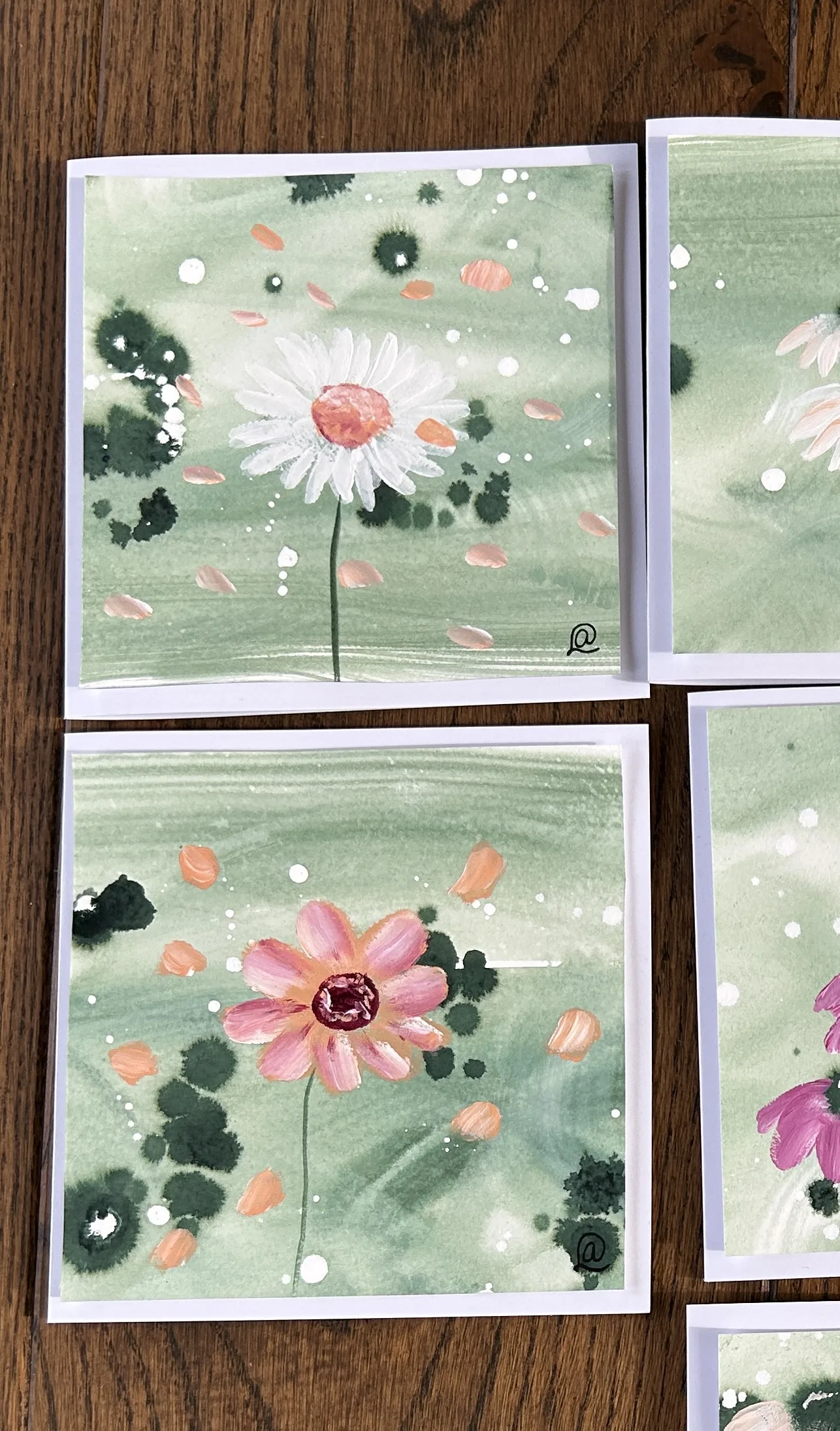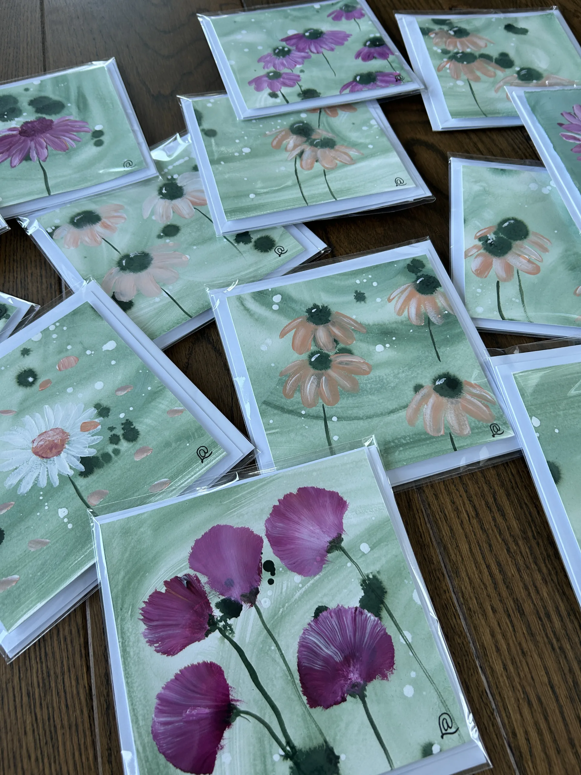 Handmålade konstkort med blandade blommotiv i min serie ”My garden”.