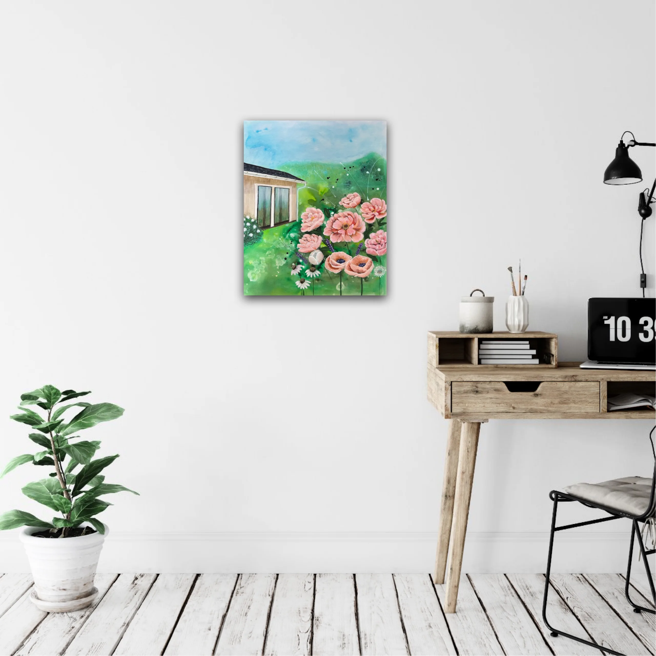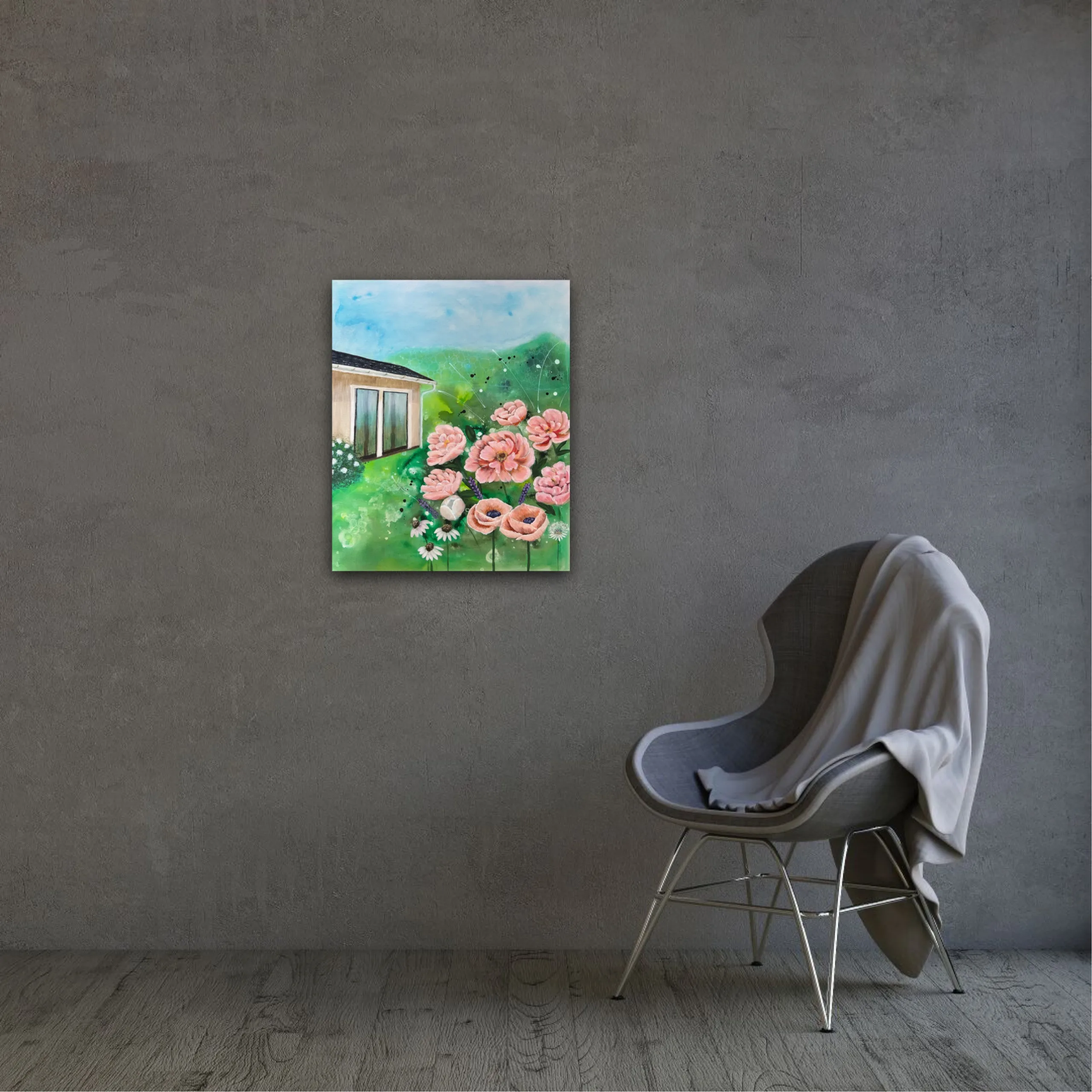 Detta är en målning om kärlek som slår rot, om att skapa ett hem och växa sida vid sida – under samma himmel.